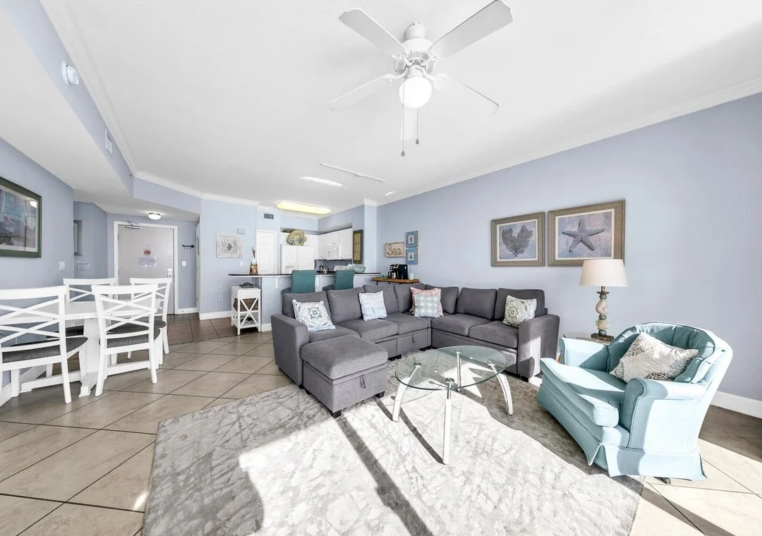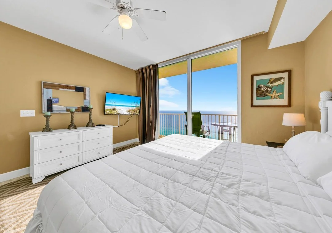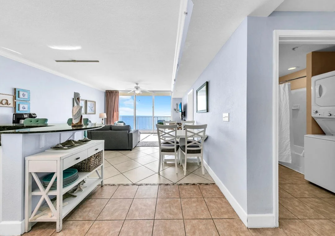 Welcome to your Gulf-front escape! This Tidewater Beach Resort condo offers stunning views of the Gulf and the perfect mix of relaxation and fun. Located less than half a mile from Pier Park, you’ll be close to shopping, dining, and entertainment while enjoying resort-style amenities right on site. Tidewater features two outdoor pools, an indoor heated pool, a tiki bar, full-service restaurant, movie theater, fitness center, roman spas, arcade, and coffee shop—all with the convenience of covered parking and a walkover. Inside, the primary suite includes a private en-suite bath with Gulf views, and a cozy bunk room with its own bathroom and sliding barn door offers the perfect retreat for kids or guests.